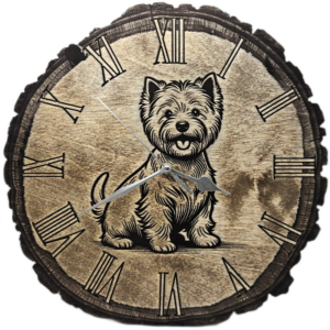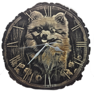 Hodiny na kterých je vygravírovaný motiv psa