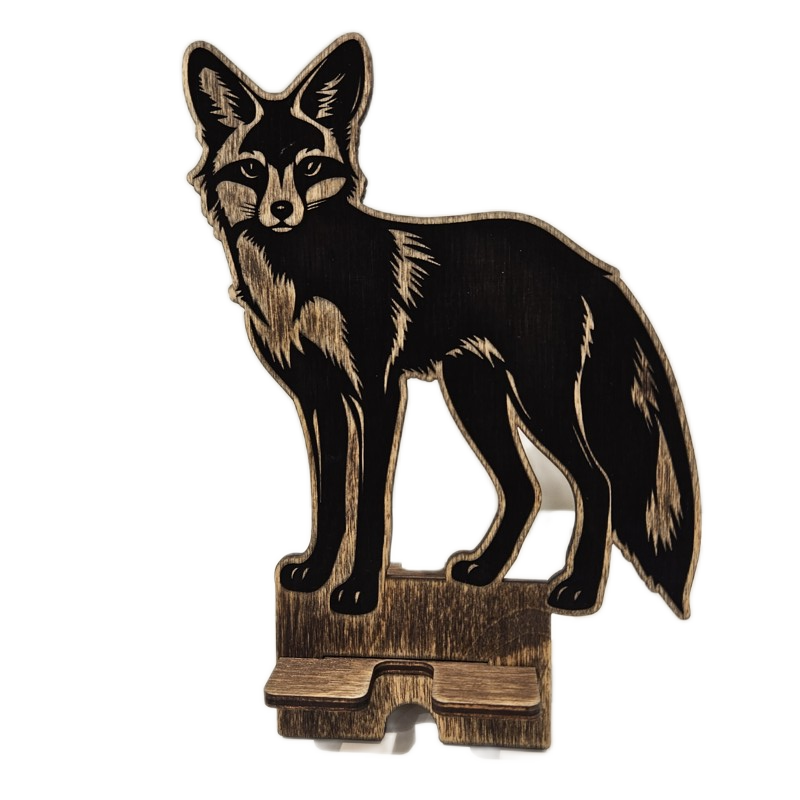 Dřevěný stojánek na telefon liška