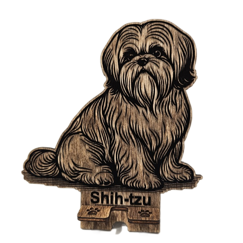 Dřevěný stojánek na telefon Shih-tzu