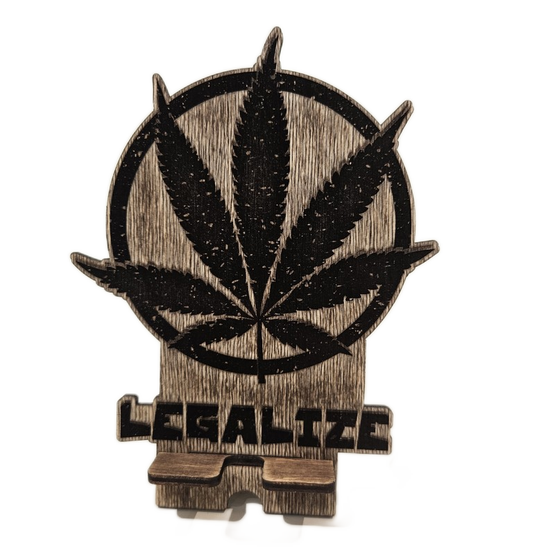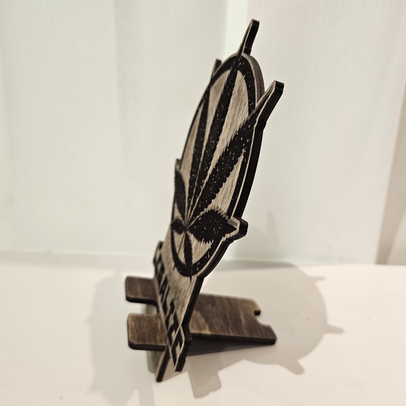 Dřevěný stojánek na telefon tráva