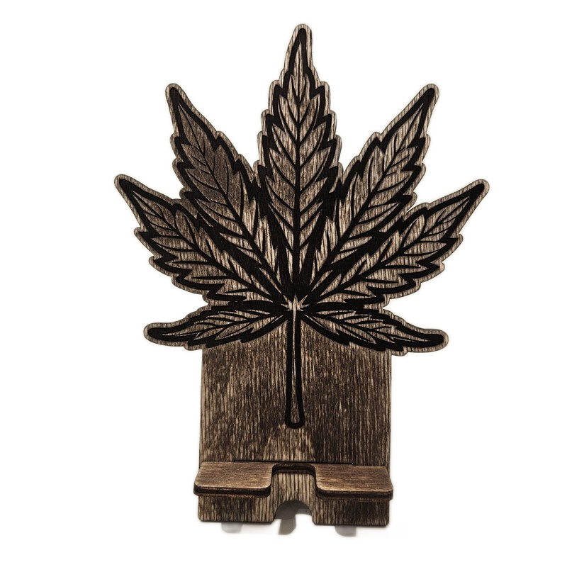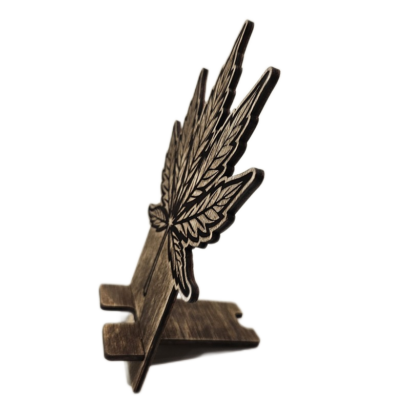 Dřevěný stojánek na telefon tráva