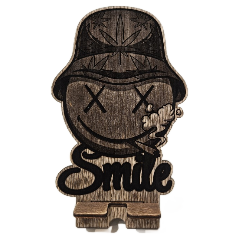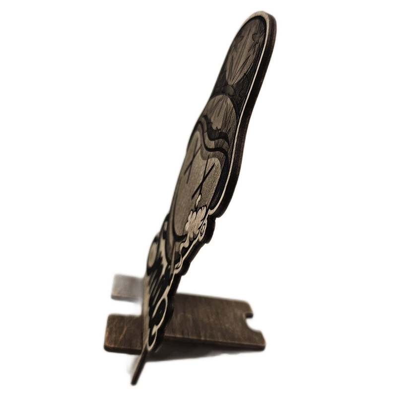 Dřevěný stojánek na telefon tráva