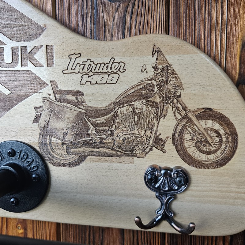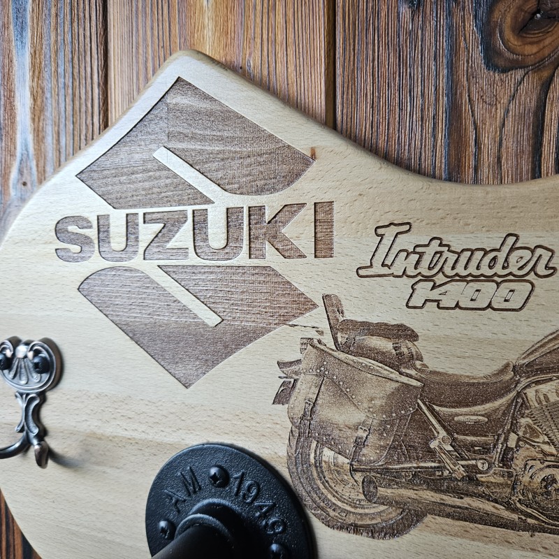 Věšák na přilbu, rukavice, klíče, bundu s motivem Suzuki Intruder 1400